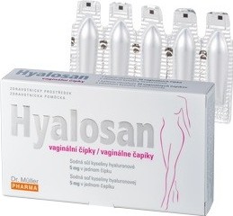 Hyalosan vaginální čípky s kyselinou hyaluronovou udržují přirozeně vlhké prostředí vaginální sliznice. Používají se na podporu regenerace a obnovu jejího přirozeného stavu při potížích způsobených vaginální suchostí a atrofií vaginální sliznice. Balení obsahuje 10 ks.