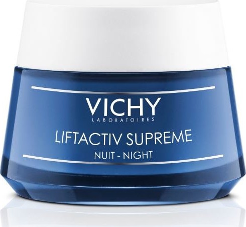 Noční krém Vichy Liftactiv vyhlazuje a vyplňuje vrásky a pleť zpevňuje během spánku. Pleť je dokonale hydratovaná, vypíná se zevnitř a pružnost pleti je obnovena. Noční krém má dlouhotrvající liftingový efekt a rozjasňující účinky. Po pravidelném používání krému jsou vrásky redukovány a pleť je pevnější, hladká a jemná. Krém má nelepivou texturu, která nezanechává mastnou stopu. Neobsahuje parabeny a je hypoalergenní, tudíž nehrozí žádné riziko alergické reakce.Noční krém Vichy Liftakctiv je vhodný pro všechny typy pleti, včetně citlivé. Dermatologicky testováno.