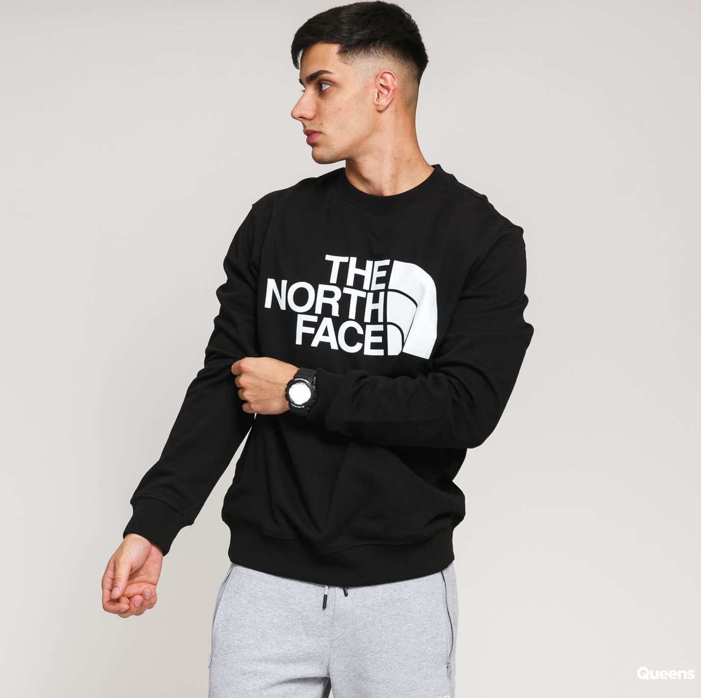 Černý pánský crewneck od značky The North Face s bílými logy na hrudi a zádech.