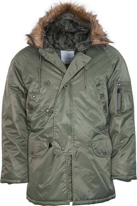 Prodloužená bunda do chladného a mrazivého počasí Velmi hřejivá prošívaná zateplená bunda do chladného počasí zhotovená z prodyšného avšak zároveň vodoodpudivého a větruodolného materiálu Střihově vychází z osvědčeného modelu Bunda N2B Aljaška STURM, ale spodní okraj není v pase zakončen nápletem nýbrž prodloužen až pod partii sedu, čímž dobře chrání bedra před prochladnutím Charakteristickým rysem je kapuca lemovaná umělou kožešinou (nahnědlé barvy). Kapuca je zateplená a velmi dobře chrání hlavu za mrazu, silného větru, deště nebo při sněžení. Na pravém rameni kombinovaná kapsa – spodní prostor na zip (např. pro zasunutí dokladů), navrchu 4 váčky (pro uložení psacích potřeb) Zapínání na pevný kovový zip krytý légou zapínanou na knoflíky Na koncích rukávů náplety Materiál: vnější: 100 % polyester vnitřní: 100 % polyester zateplení: 100 % polyamid Hmotnost: 1305 g (vel. L) Výrobce: STURM, Německo